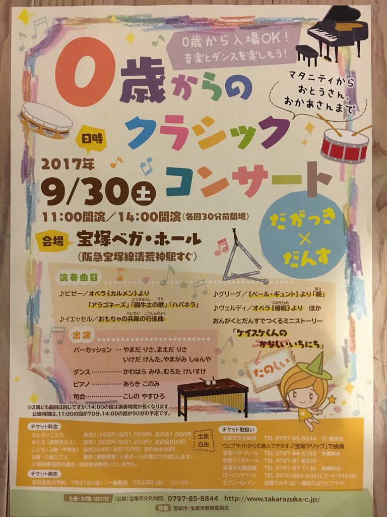 0歳児から楽しめるフルオーケストラのクラシックコンサートです。 対象:未就学児とその家族 日時:9月15日(日)午後1時30分~2時45分(開場:午後1時) 場所:市民会館 演奏予定曲目: ・イベール「モーツァルトへのオ …. ですが、 「0歳からのクラシックコンサート」は、その 名の通り、0歳児からが対象となっています。 そのため、ベビーカー置き場があり、スタッフはみんな親切で、授乳室やおむつ替えの部屋が用意されています。. 0歳から入場ok! 絵本でみよう!ベガ・ホールの40年! 出演 福嶋 令奈(ヴァイオリン) 須山 由梨(ピアノ) 越野 保宏(司会)ほか 曲目 j.s.バッハ/主よ人の望みの喜びよ モーツァルト/トルコ行進曲.