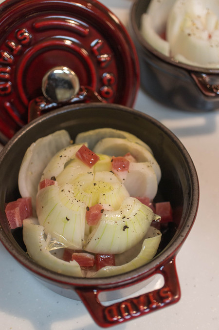 ストウブで 新玉ねぎと新じゃが リンゴ3コ分