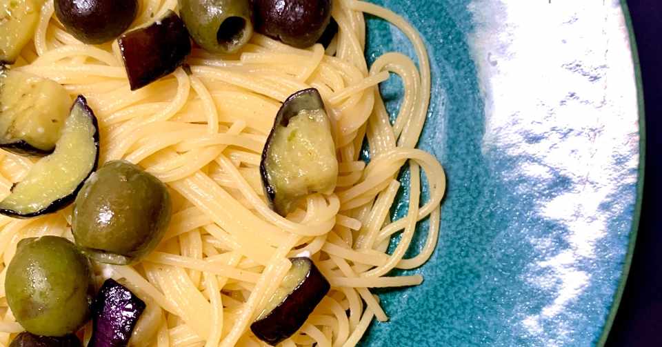 オリーブとナスのパスタ フェタチーズと共に 佐久間俊介 Note