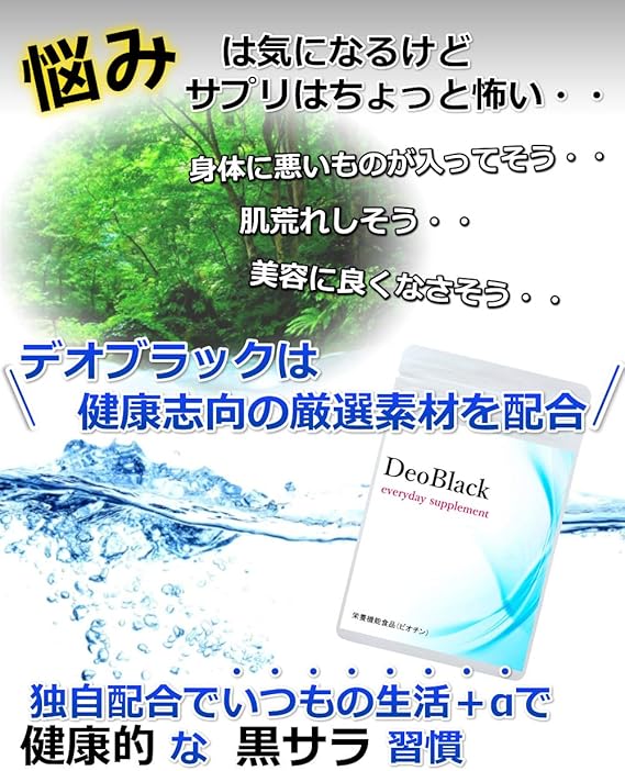 Amazon Deoblack デオブラック 白髪が気になり始める30代からの 黒サラ習慣応援サプリメント ケラチン プラセンタ マンガン クロム モリブデン 亜鉛 銅 セレン ビオチン ギャバ シャンピニオン Deoblack Deoblack マンガン