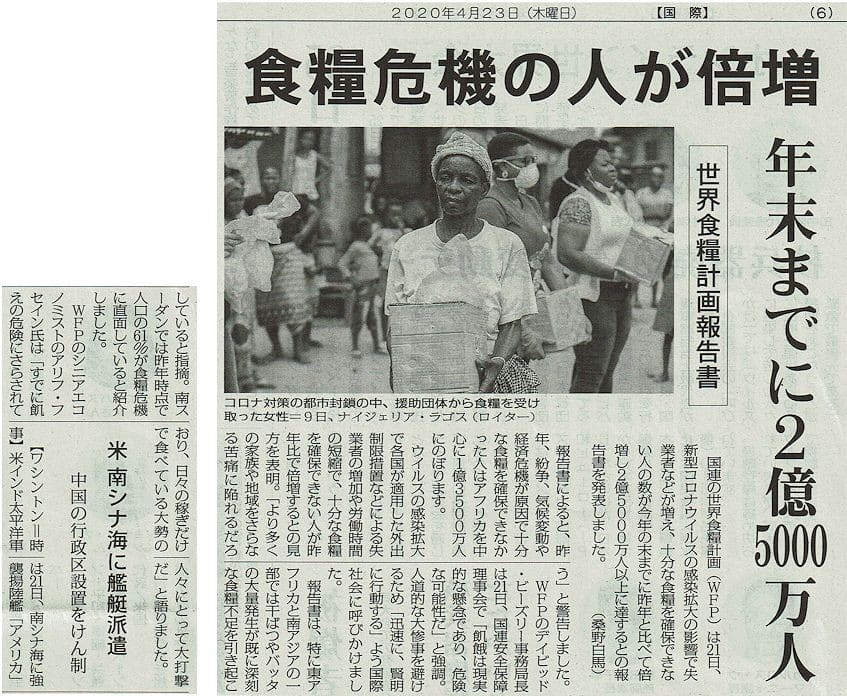 食糧危機の人が倍増 年末までに万人 世界食糧計画報告書 今日の赤旗記事 新版 お魚と山と琵琶湖オオナマズの日々