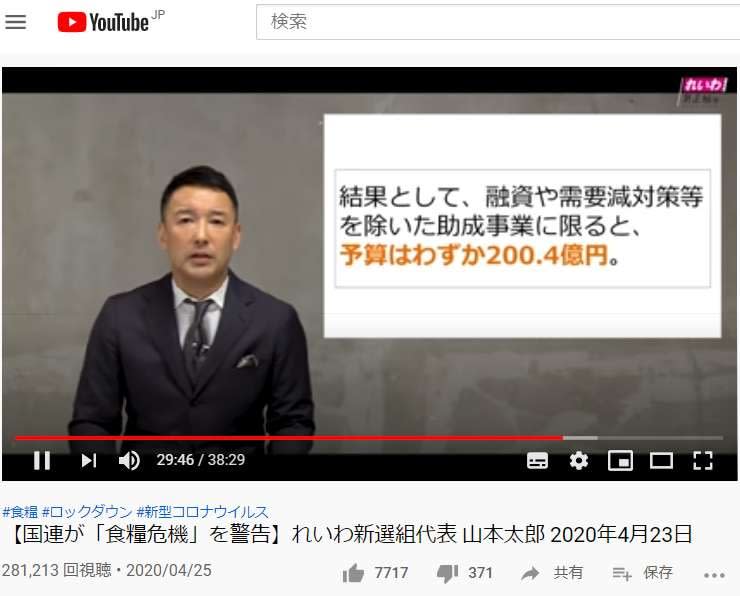 現実味増す 食糧危機 に備える対策を れいわ新選組 山本太郎が動画で発信 長周新聞