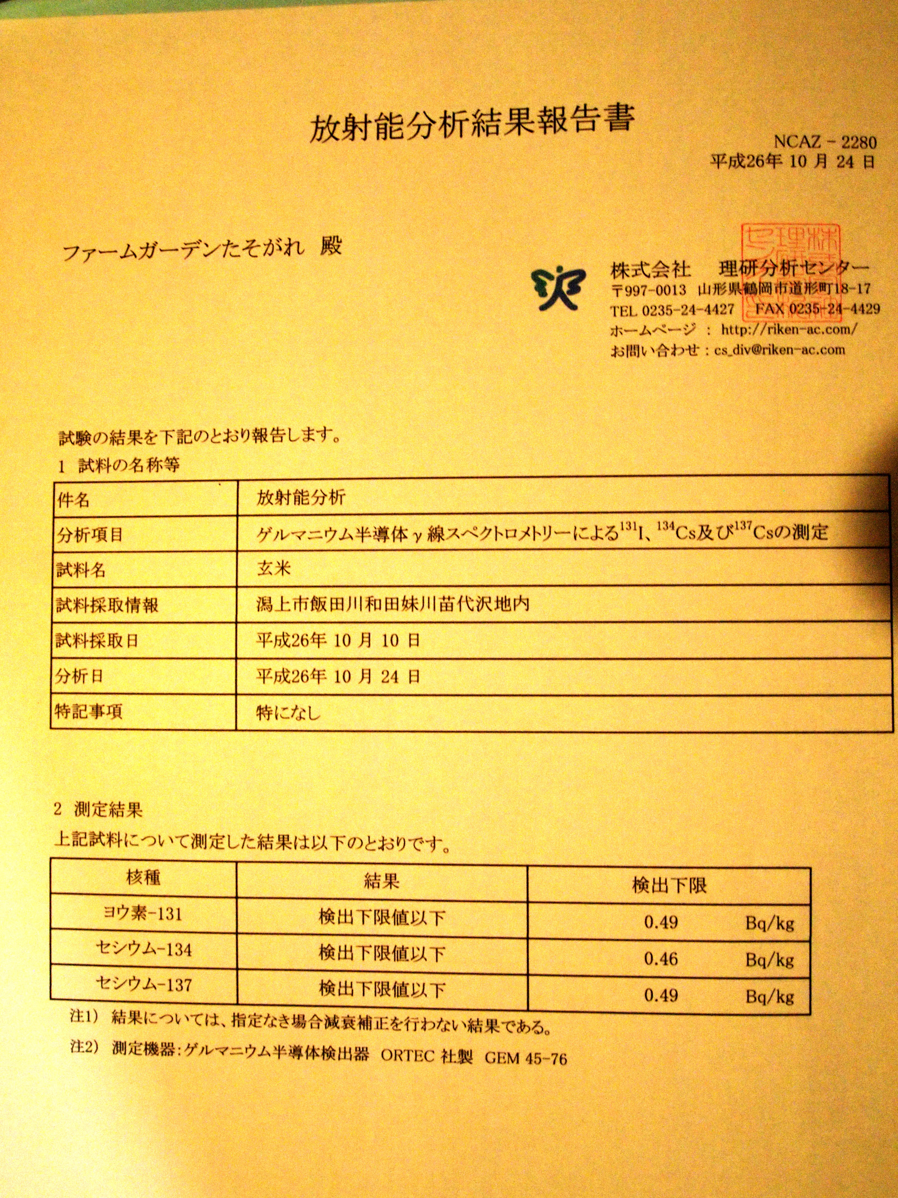 平成26年産玄米 放射能分析結果 Farmgardenたそがれのページ