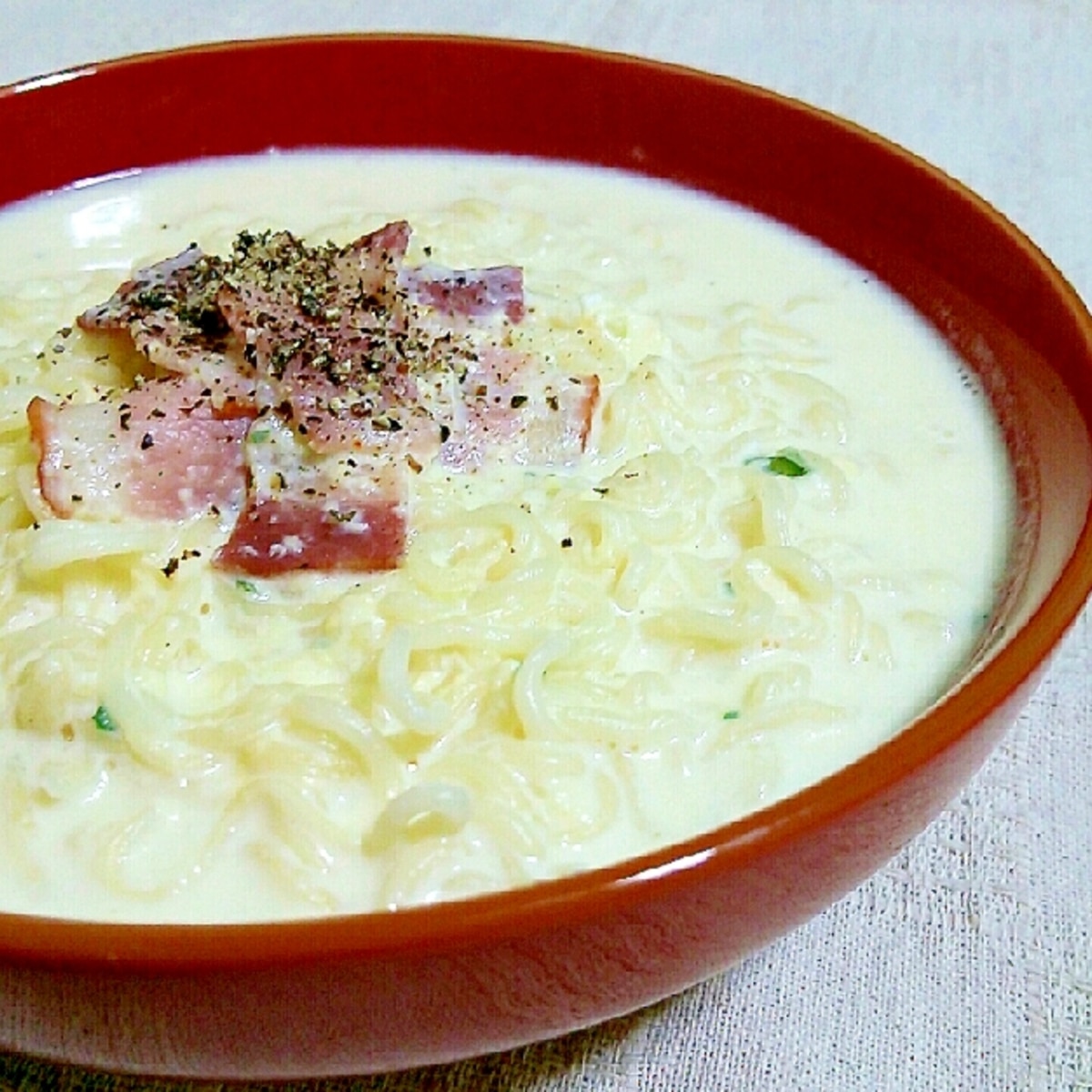 こってりおいしい インスタントラーメンで作るカルボナーラ