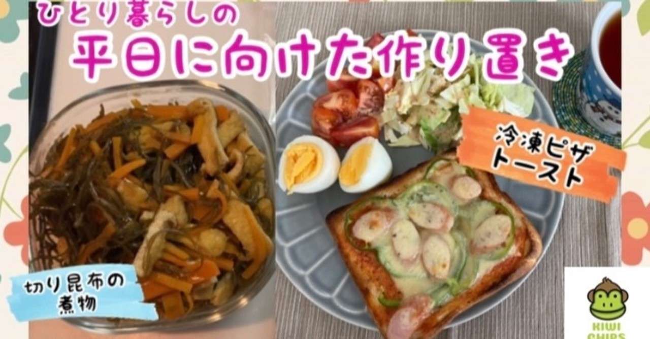 ひとり暮らしの作り置き 切り昆布の煮物と冷凍ピザトースト Kiwi Chips Note