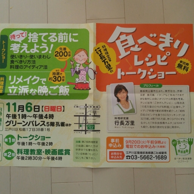 食べきりレシピトークショー江戸川区 料理研究家ブログ行長万里 日本全国 美味しい話