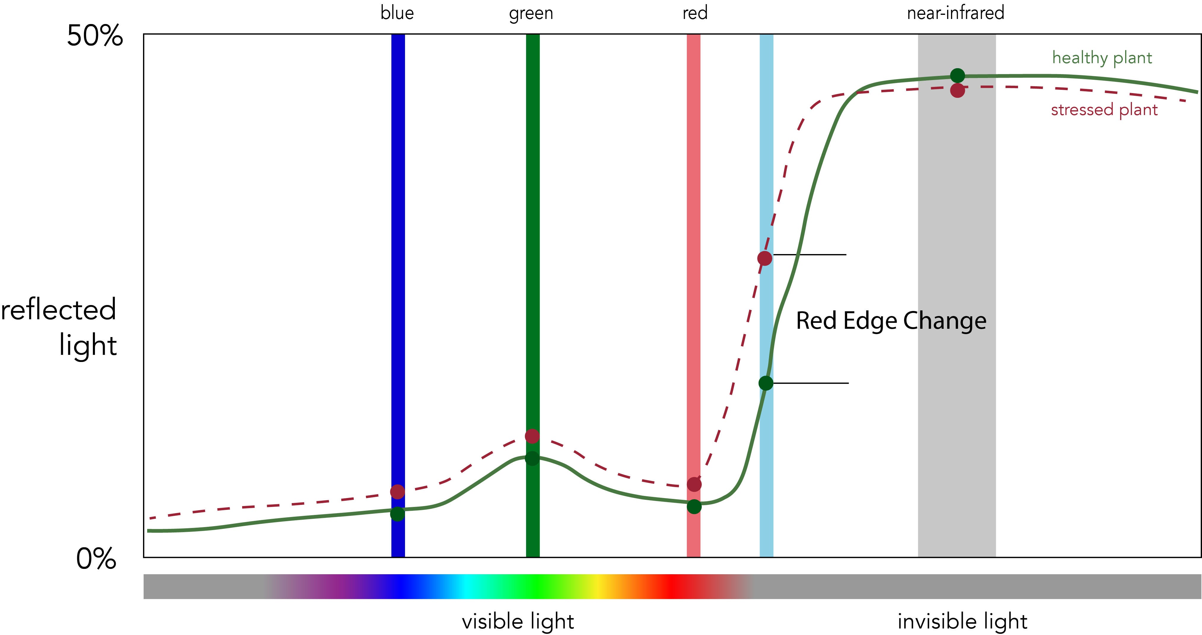 Whether it’s a huge marketing campaign or a small website development project, they go above and beyond to discover the “why,” provide creative solutions for “how,” and then wow with the “what” in the final product. NDRE uses a combination of NIR light and a frequency band that sits on the transition region between visual red and NIR light — hence the name “Red Edge”. Compared to red and blue wavelengths, chlorophylls a and b absorb less radiation at green and red edge (RE) wavelengths.