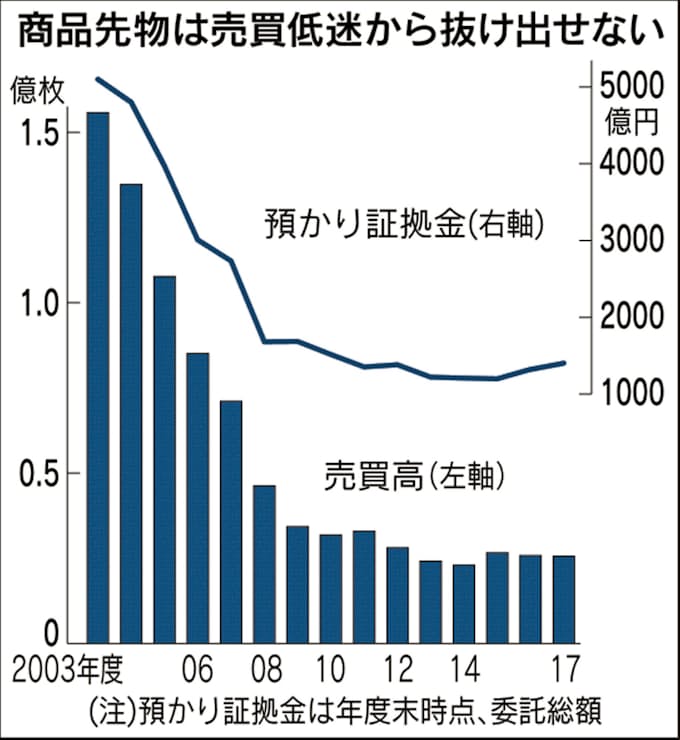 商品先物 売買高8割減 勧誘規制でマネー流入細る 日本経済新聞